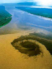 到了玛瑙斯绝对不能不看黑河和所里门河二条河河水汇聚的壮观景象。黑河黝黑的水和所里门河浅淡的水撞击在一起。这二条河在距玛瑙斯10公里的地方相遇,然后左右相傍一起奔流6公里,直到汇聚成世界上水流量最大的亚马孙河。 游客可以坐小飞机从空俯瞰河川汇聚的景象。也可乘船抵达那里。船只从黑角河滩(Praia de Ponta Negra)的水上港口(Porto Flutuante)出发,沿着黑河至与所里门河相遇点。一路上,游客可以看到玛瑙斯市和其历史建筑物,以及美丽的自然风光。 当船只抵达二条河的相遇点后,便在二条河水的界限上航行。黑河和所里门河之所以没有马上汇聚在一起,系因为二条河水的密度和温度不同,还有水流的速度也不一样。也正因为这是一种罕见的自然景观,所以游客到了玛瑙斯,千万不能错过! |