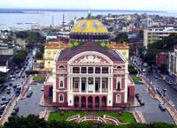 亚马逊剧院历时12年建成,于1896年启用,邀请著名的意大利抒情乐团在揭幕式当天表演,轰动一时。剧院建筑蓝图系由奥利维拉布拉卡所设计,而门面及内部装潢则由亨利马萨罗尼、克力斯宾阿马劳、多梅尼哥安杰力斯、修飞欧仙多方奇、阿道贝多安德烈斯和福蓝西斯哥阿雷基尼共同完成。剧院的圆顶为金属架构,上面铺设三万六千块欧洲进口的琉璃瓦。入口大厅和楼梯也都铺设葡萄牙及意大利大理石。过去用来举行喜庆宴会的贵宾厅,陈设许多艺术品,特制地板使用一万二千块原木拼砌成,完全不需要用钉子或黏胶固定。 除了建筑美观,剧院内的艺术品亦值得一提,特别是多梅尼哥安杰力斯绘制的“亚马逊艺术光辉”画作。克力斯宾阿马劳在大厅天花板的表现,恰似从巴黎铁塔正下面抬头看上去的景象。大厅石柱用22只面具装饰,代表22位重要的戏剧和音乐大师,如莎士比亚、莫力雷和贝多芬等。舞台背景布幕则绘出黑河和所里门河汇聚的壮观图景。 |