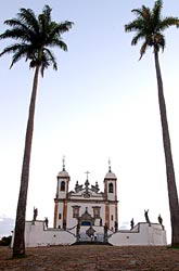 被联合国教科文组织选为「人类文化遗产」的马多基尤斯主圣殿,是巴西巴洛克时期最伟大的艺术家阿雷贾基尤的精华之作。还有竖立在通往教堂阶梯上,用肥皂石雕刻的12尊预言家像,以及圣殿前六间小教堂内,另外66尊描述耶稣受难记的彩绘杨木雕像,也都是阿雷贾基尤的作品。马多基尤斯主圣殿系由葡萄牙人飞力西亚诺·孟基思为叩谢神恩,从1757年开始兴建,1773年建成。主圣堂的塔楼有一点弯度,里面摆放着多位艺术家的雕刻作品。圣堂天花板的壁画是贝拿多·比力斯·达·修华所绘,唱诗楼的壁画则是阿达伊基大师的作品。正门雕饰取材于葡萄牙巴塞洛斯市的十字主教堂。圣坛上供奉着阿雷贾基尤雕刻的圣像。 在抵达教堂前,必须走上一座阶梯。上面竖立着12尊由阿雷贾基尤在1800年至1805年间雕成的预言家像。在创作预言家系列作品之前,他已完成描述耶稣受难记的66尊彩绘杨木雕像。其中,叶泽基尔预言家系完全由阿雷贾基尤使用二块肥皂石雕刻,然后在腰部的地方衔接起来。而丹尼尔则是最完美的预言家雕像之一,用一整块肥皂石雕成。 |