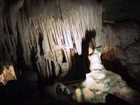 马基内岩洞长650公尺,深18公尺,分成彼此以狭窄廊道相接的自然厅堂,依岩石和钟乳石的形状被命名,如“熊厅”、“羊厅”等,还有一个看起来像原子弹爆炸时的“大草菇”。岩洞内的温度介于18o至22oC。在洞内发现史前人类和动物的化石、骨头和文物,显示出数千年前已有人类在那里生存。 |