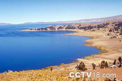 南美洲海拔最高,面积最大的淡水湖,也是世界最高的淡水湖之一,位于玻利维亚和秘鲁两国交界的科亚奥高原上,被称为“高原明珠”。传说水神的女儿伊卡卡爱上青年水手蒂托,结为夫妇。水神发现后,将蒂托淹死,伊卡卡将蒂托化为山丘,自己则变成浩瀚的泪湖,印第安人将他两的名字结合在一起称之为“的的喀喀”湖。面积有8.330平方公里。湖海拔3.812米,水深平均100米,最深处可达256米,其中2%5在秘鲁境内。湖为群山环抱,景色秀丽,湖岸蜿蜒曲折,形成许多半岛和港湾。秘鲁境内有45条河注入此湖,仅有东南角的德萨瓜德罗河为出口。的的喀喀湖是南美洲印第安人文化的发源地之一,印第安人称之为圣湖。阿依玛拉族认为他们时代崇拜的创造太阳和天空星辰的神也来自湖底。在湖中及沿岸有丰富的自然资源。暗青色的香蒲是湖区特产,它不仅给湖岸镶上了一条素雅的滚边,而且是编制小船,蒲席,围墙和盖屋的上好材料。玻利维亚境内有著名的太阳岛和月亮岛,岛上有丰富的印第安人遗迹。月亮岛上有公元前的古城遗迹,有精美壮观的“金墙”,宫殿和庙宇金字塔及其他建筑物。最近,在科阿岛和怕利亚拉岛之间的湖底还发现了一座水下古城遗迹,包括隧道,洞穴以及经过雕刻的墙壁等。湖岸的印第安人从远古起使用鸟粪肥种植玉米,土豆等农作物。他们在雕刻,建筑,冶金,制陶等方面都达到很高水平。的的喀喀湖终年通航,是连接秘,玻两国的交通要道。