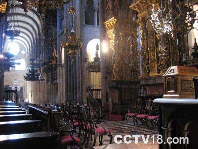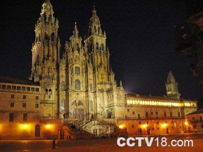 11世纪时在圣地牙哥建造的圣地亚哥大教堂,祭祀着基督的12门徒之一的雅各。12世纪左右他被推崇为基教国家西班牙的守护圣人。因朝圣者勇来而鼎盛。侧面回廊是可以沿着圣地亚哥大教堂内走一圈的朝圣路线型式。在地下祭坛中安置着雅各的遗体。 朝圣教堂――圣地亚哥大教堂显示出与加洛林文化传统的承续关系,采用加洛林时代的双半圆室平面。