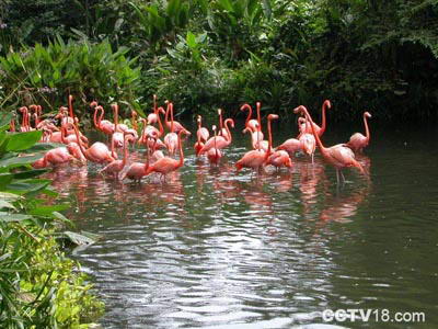“东南亚珍禽屋”所展示的是东南亚地区所有珍禽和濒临绝种的鸟类。在目前世界上最大的步行鸟舍内,有自由飞翔的各种鸟1200多只。“企鹅宫”是全世界第二大企鹅展示区,人们可在观赏台欣赏笨拙可爱的企鹅在水中畅游和进食的神态。飞禽表演也是很吸引人的节目,驯鸟者一声呼唤,巨大的雄鹰、猫头鹰好似“飞将军从天而降”,由几百米处的山林飞到露天表演场的表演者手上。各种鹦鹉在表演者的指挥下不仅会讲“Goodbye(再见)”、“Hello(你好)”等英语单词,还会模仿狗叫、猫叫、鸡啼,充分显示了高超的模仿能力。 人工大瀑布是飞禽公园的另一景色,高达30.4米,水流自上飞泻而下,形成了美丽壮观的大瀑布,同时发出轰轰的声响,气势磅礴。 |
