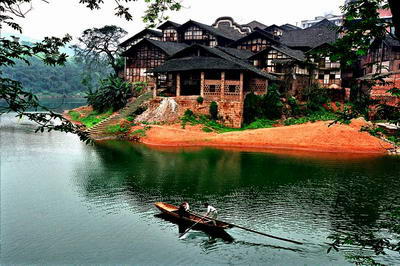 古镇商铺建筑最具代表性,依山势形成的商街纵向长1000多米,层层递进,其风雨场的过街建筑几乎都是能遮风避雨不见天日的“封闭式”建筑,由此设计,充分考虑到了川东地区雨晴不定的特点。建筑多为两层“吊脚楼”,下层为铺面,楼上可住人,铺面开间做得较大,且易组合;整座古镇全系青色瓦片盖顶,红漆木板竹篾夹墙,圆柱承重,古朴凝重中透出原汁原味的巴渝人家风韵。 古镇现居有209户人家,民间传统的经营业态如铁匠铺、中药铺、剃头铺等依然存在。此刻,晚冬的暖阳斜照着射进狭窄的老街,给灰暗黝黑的街面一隅镀上一抹金黄,古镇顿时有了勃勃生气。踏着块块黛青石板铺就的老街,在弯弯拐拐的石梯小巷穿行,穿场而过的风中不时弥漫着阵阵草药的清香,铁匠铺里飞溅的炉火和叮叮当当的打铁声,合谐得竟有一种不需雕琢的艺术风味,而街畔屋檐下那剃头的白发老翁,安闲而自在,像一幅油画,烘托出古镇风韵独有的安居乐业图。历史建筑是一个城市的根,也是个人体验的重要组成部分之一。