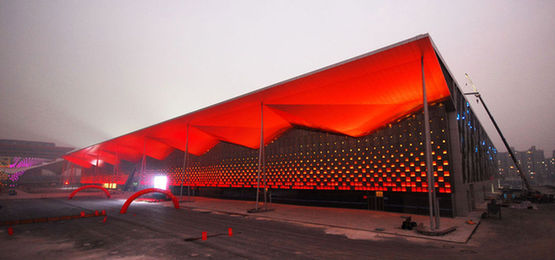沪上生态家看完远大馆就去城市最佳实践区,剩下的企业馆下午再去看。过去之后大阪、台北的展馆都算不错,还有巴西圣保罗的案例都值得一看。看到天桥后就上去,在靠近中山南路那边是城市最佳实践区最精彩的北部建设案例区。 在那里有上海的“沪上生态家”,告诉大家现代居住环境的创新。还有百年老当铺——澳门德成按,上去有金庸图书馆,你喜欢的武侠人物会出现,运气好的话会碰上金庸亲自签名售书。另外西安的大明宫和宁波的滕头村也不错。国外方面我大家去伦敦的零碳馆,汉堡的汉堡之家,沙特麦加的帐篷城,还有马德里的竹屋。对了,忘记告诉大家了,城市最佳实践区本身就是个展品,所有的灯光效果来自法国里昂的设计。 看完这些之后,大家重新过天桥去南部街区,你会看到有个广场,叫世界城市广场,走累了可以在帐篷下乘凉,那些大型遮阳棚的造价是200万一把啊!广场中央有舞台,可以看演出,烟囱底下是未来馆,下午去看。时值中午,首要任务是吃饭,未来馆靠近天桥那边的餐厅是浦西最大的,我去那里吃。