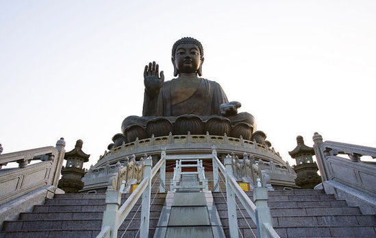 NO.10 大屿山参拜天坛大佛 天坛大佛坐落在香港大屿山木鱼峰顶,是当今世界上最大露天青铜坐像。佛像身高23米,连莲花座及基座总高约34米。重250吨,由202块青铜焊接而成。重5吨的佛面,在浇注时加入约2千克黄金,更添光彩。大佛造型集云岗、龙门佛像和唐代雕塑技术之精华,庄重慈祥。坐南朝北,右手齐胸屈举,五根手指平伸,示“无畏印”,代表拔除痛苦;左手下垂脚上,反掌向外,指端微微向下,称“与愿印”,寓意施予快乐,表现了大雄大力与大慈大悲。被誉为尖端科技与东方艺术的结晶。从木鱼山脚登上天坛底座,有260级石级。底座仿北京天坛圆丘而建,故名。内部结构分3层:功德堂、展览厅和纪念堂。功德堂立有捐款者姓名的石碑。 |