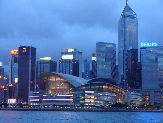 NO.4 观赏香港会议展览中心 香港会议展览中心(会展中心)是一座宏伟和具备多功能的场地,座落於香港商厦林立、繁忙的商贸中心地带,其临海位置并可俯瞰维多利亚港。 展可供租用总面积为63,580平方米,每天访客流量可达140,000人。会展有架空行人道连邻近的湾仔商业区,附近的公共交通工具包括有巴士、渡轮、地下铁路等。它是亚洲第二大的会议及展览场馆,规模仅次于日本。中心有三个大型展览馆,提供28000多平方米的展览面积,可容纳2211个标准展台;又有不同大小的会议厅房共占地3000平方米,以及一个面积4300平方米的会议大堂。在此大堂举行会议可容纳4300人,用来举行宴会则可招待3600名宾客,是全球最大的宴会厅之一。 交通:会展中心四通八达,乘坐地下铁路、渡轮、公共巴士均能直达会展中心,会展中心就近亦设有两个停车场,方便不同类型观众。