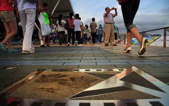 NO.6 香港星光大道 香港星光大道(英语:Avenue of Stars)是位于香港九龙尖沙咀东部的尖沙咀海滨花园,沿新世界中心对出的维多利亚港。星光大道由新世界集团斥资四千万港元兴建,并获得旅游事务署、香港旅游发展局、康乐及文化事务署及香港电影金像奖协会鼎力支持及全面参与。作为表扬香港电影界的杰出人士,地面装嵌的73名电影名人的牌匾,30多块有名人打手印,成为香港旅游一个热点。从香港德高望重的老牌电影人狄龙、楚原、谢贤,到当代国际港片大师吴宇森、徐克、洪金宝、冯宝宝,和杨紫琼、刘德华、成龙等,都在这里留下了他们的手印。2005年11月27日,武打巨星李小龙的铜像也在香港星光大道揭幕。铜像高2米,按照电影《龙争虎斗》的造型而制成,以纪念李小龙65岁冥寿。大道入口处还设有金像铜像及一个供表演活动的小舞台。大道沿途有小食亭、纪念品小卖亭、一些与电影相关的雕塑和休憩座椅供游人享用。 漫步星光大道,在观看众多名人手印同时,可从容地欣赏到香港著名的维多利亚港景色、香港岛沿岸特色建筑,这里还是香港崭新的多媒体灯光音乐汇演-幻彩咏香江理想观赏点。另外,“星光大道”邻近天星码头及地铁尖沙咀站,交通方便易达;游览完毕,再前往购物、用餐及参观其他文化景点,如香港艺术馆、香港太空馆及香港文化中心等,也只是咫尺之遥。 交通:地铁尖沙咀站G出口,经人行隧道往九铁尖东站J出口,然后依路牌指示往“星光大道”。
