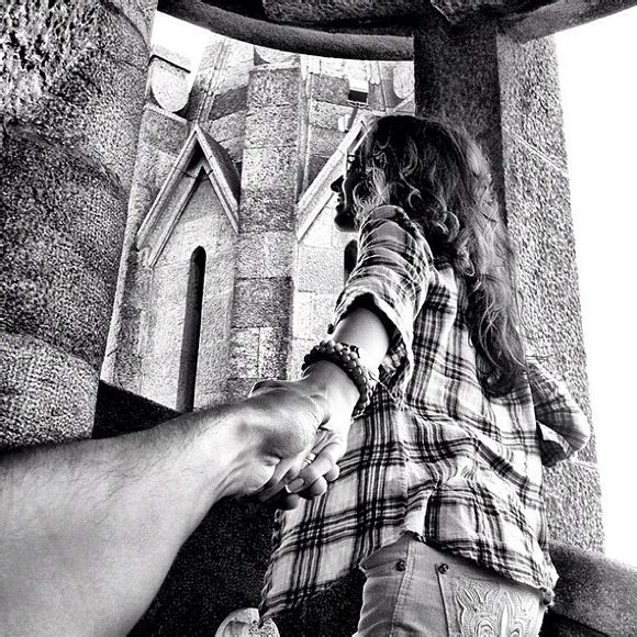 题记: 俄罗斯摄影师Murad Osmann跟他的女友在旅途中拍摄了一组创意摄影作品,名为《跟我走》。这个系列中,每张照片都是从摄影师的视角进行构图,而他的女友在画面的中心,背对着牵着他的手向前走。 相同的姿势,相同的视角,相同的人。不同的背景,不同的着装,不同的色彩。正是这组照片吸引人的地方。如果你已经有了女朋友,那你也可以试试拍摄这种组照。如果你还没有女朋友,希望你能早日找到。 美国媒体报道了最近爆红的照片《Follow me》——俄罗斯摄影师Murad Osmann和他的女朋友Nataly Zakharova 牵手出现在世界各地。无论繁华还是寂静,只要你牵着我,就是整个世界! Murad Osmann说,女朋友经常抱怨我东拍西拍,于是爱拉着我的手往前走,她不知道这样也停止不了我拍美丽风景的念头。 Nataly Zakharova面容惊艳,身材火辣。宅男们不禁惊呼:我的女神你怎么还没出现。