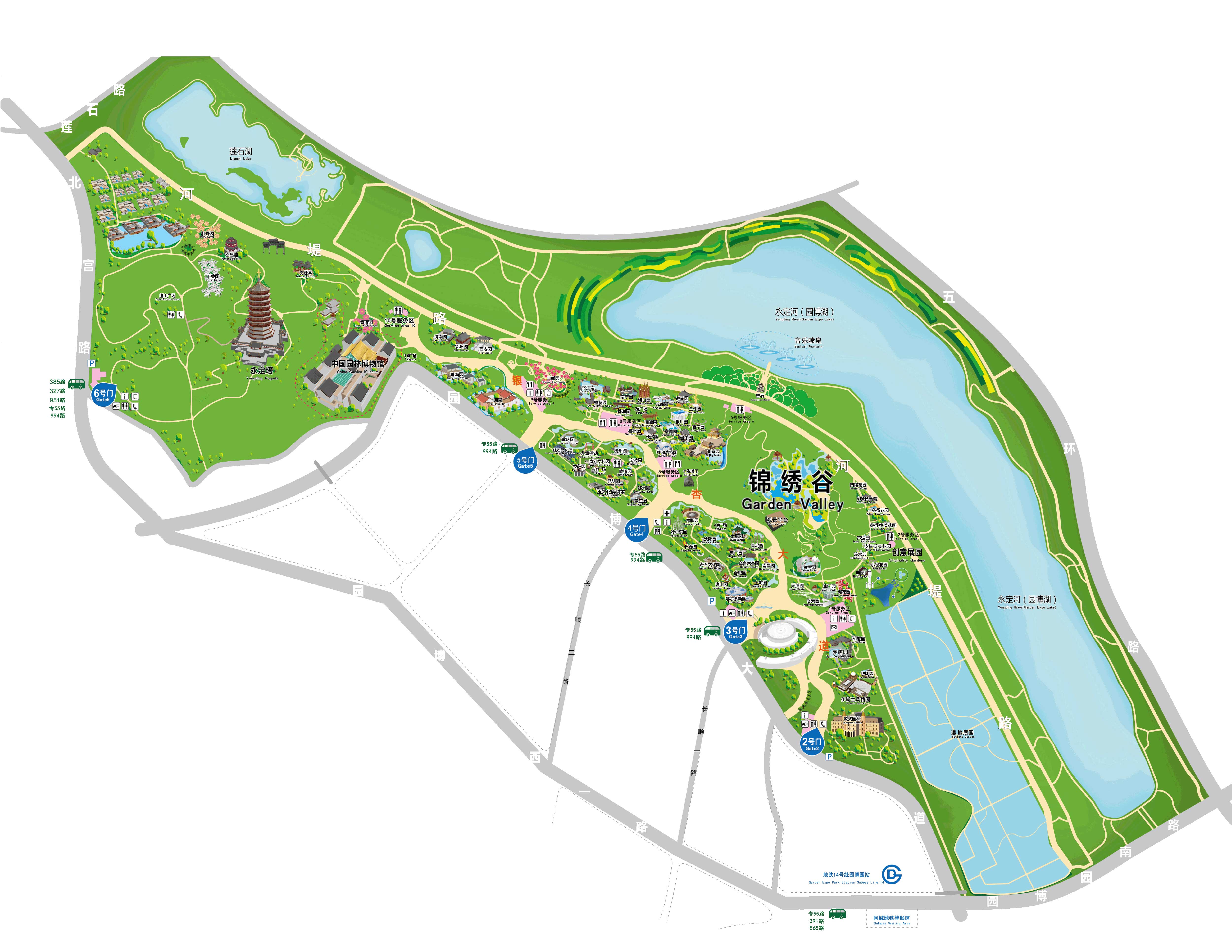 锦绣谷 锦绣谷原为永定河河床的一部分,曾作为采砂场,后成为建筑垃圾填埋场,至园博会筹建仍留有一个面积为10公顷,深达30米的大沙坑。设计师利用既有地形,将现状垃圾填埋场改造为下沉式景观花园,取传统的“燕京八景”之精髓,内设有燕台大观、风篁清听、云台叠翠、云飞霞起、绿屿花洲、林天霞影、采芳云径等景区和大型山石叠水、花卉瀑布等景观,成为北京园博会生态修复的新亮点,完美诠释“化腐朽为神奇”的生态理念。 重修开放 2013北京园博会开幕于2013年5月18日,到2013年11月18日园博会闭幕,之后北京园博园闭园作整修。2014年4月1日,北京园博园以新貌向北京市民开放,门票20元/人。 北京园博园地址:北京市丰台区永定河西岸园博园 北京园博园电话:010-63915561 63915650 北京园博园网址:http://www.gardenexpo-park.com/ 交通提示 地铁线路 乘坐地铁14号线园博园站下。沿园博大道步行300米进入1号游览门区;步行700米进入2号游览门区;步行1300米进入3号主游览门区。 公交线路 乘坐专55路可到园博园三号门下车,到达园博园2号门、三号门。 乘坐专55路、327路、951路或994路可到芦井北站下车,到达园博园6号门。 乘坐391路、574路或565路,到地铁园博园站下车,转乘专55路、994路公交到达园博园3号门,或到芦井北站下车到达6号门。 自驾车 1、京港澳高速方向:沿京港澳高速公路出京方向行驶,从杜家坎收费站驶出,进入杜家坎环岛,沿环岛右转,向北进入园博大道直走,按指示牌泊车。 2、梅市口路西方向:沿梅市口路向西行驶,经过园博园桥进入园博园南路,第二个红绿灯右转,进入园博大道直走,按指示牌泊车。 3、西六环北宫出口方向:从西六环45号出口,45(A)衙门口桥方向,进入莲石路,第一个出口驶出,进入北宫路,第三个红绿灯左转,到达6号门。 4、西五环方向:沿西五环至园博园南路出口驶出,进入园博园南路,过园博园桥,第二个红绿灯右转,向北进入园博大道,按指示牌泊车。 门票信息:20元 开放时间:7:00-19:00(4月-10月,16:00停止入园) 7:30-18:00(11月-3月,17:00停止入园) |