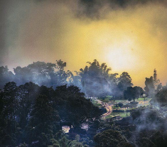 摄影by:高主席 一座座造型别致的白色小楼错落在浓荫绿抹之中,远远望去,就像美丽的积木砌成。特别当阳光正炽,山顶云雾缭绕,远远眺望恍若世间仙境。