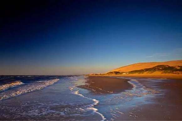 这里的沙细、滩缓、水清、潮平,这里以“沙漠与大海的吻痕”而驰名。不仅能看海还有滑沙的地方。未被污染的海水、沙滩和人性。