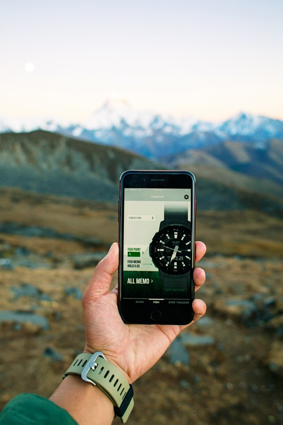 而在户外提供地势信息的工具中,个人认为评价标准可以用及时、准确的将户外地势信息呈现给使用者是最为重要的,这也是我无论每次去哪里都会将户外手表作为必不可少的户外工具之一。之前的户外手表长时间陪我征战户外,已在前段时间光荣退休。恰巧无意间看到PRO TREK“angler line”系列的PRT-B70满足了我所有的需求,卡西欧PRO TREK为其配备四重感应器(罗盘、高度&气压、温度、计步器),蓝牙连接功能、潮汐图/月龄、同时也能精准推荐钓鱼时间,使得外出上天入海更加从容,所以果断入手!