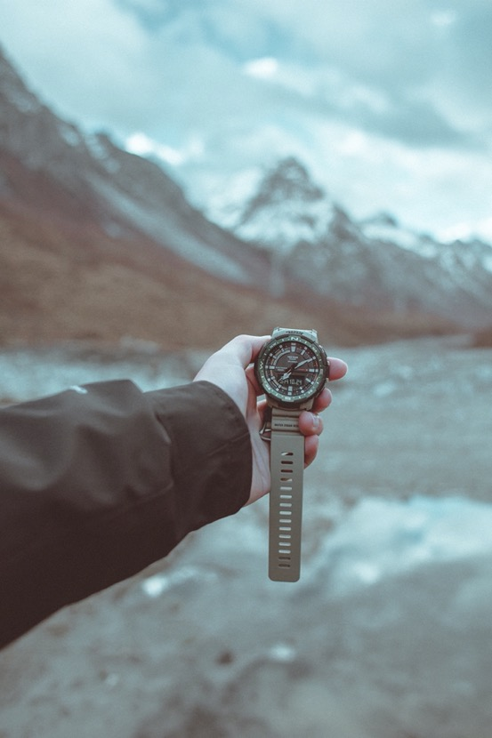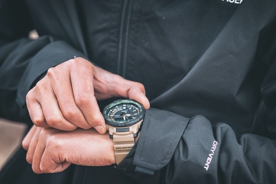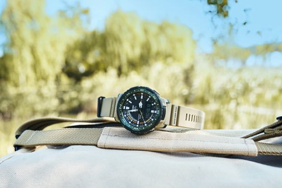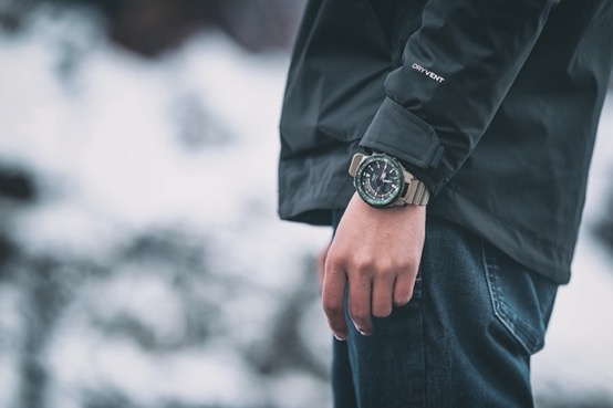 当时我选择PRO TREK被品牌的solgan“feel the field”所击中。在我们所有热爱户外探险的人心中,难道不是都是因为抱着想要感知大自然为初衷而去探险的吗?对于选择PRT-B70我个人归结为两点,首当其冲的是强悍的专业户外功能,其次是粗旷的造型设计,优质的树脂表壳以及铝材质旋转表圈为产品提升质感。在粗旷的外形设计上PRO TREK为其加入了诸多外观细节设计,例如大规格指针方便查看,前置照明按钮方便在光线昏暗的地方使用,还为PRT-B70的表带加入滑杆型设计,方便替换和清洗表带。与粗旷的户外设计风格形成了鲜明对比,就像一位肌肉猛男拥有一颗温柔的心。让我在使用一段时间后好感倍增。