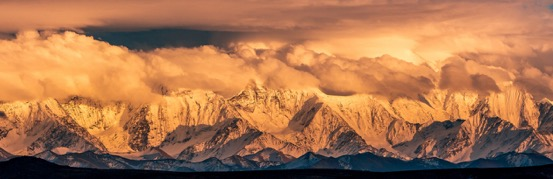 在上山之初天气呈现出阴天的趋势,根据PRT-B70提供的气压信息,也就是前文提及四重感应器中的高度&气压并结合云图工具,来测算出最适合拍照的时间。最后的成果也不出所料,日落出片效果非常完美,不仅拍到了贡嘎群山日落,也拍到了雅拉雪山的日照金山!