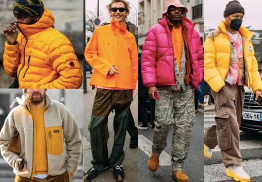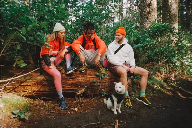 一、两种色调趋势:鲜亮配色和大地色系 Gorpcore风格的衣服往往是相当丰富多彩的。传统的露营装备和外套往往以明亮的颜色为特色。紫色、橙色、绿色、红色、蓝色和粉色;这些通常在体育用品商店之外很难找到的如此鲜亮的配色。 这要追溯到我们在大自然中发现的那些让人着迷的颜色——蓝绿色的水,青翠的森林,粉紫色的日落,还有彩虹般的花朵。自从科技服装巨头光头埃罗尔森休(Errolson Hugh)离开后,耐克的改良ACG系列就体现了这种对大地色调和复古亮色的关注。