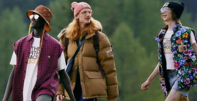 四、抗撕裂的防雨硬壳 就像几乎所有其他东西一样,抗撕裂属性在gorpcore中的受欢迎程度是基于实用性的考虑。由于加强的交叉编织线设计,这种面料可以很好的抗撕裂,对于那些想要穿宽松外套的人来说,它是不错选择,因为树枝或石头会卡住外套。轻便防雨衣,可以在温暖的天气里单穿,或者套在抓绒或者羽绒服外面叠穿。 五、保暖外套 羽绒夹克是gorpcore不可或缺的元素,它的普及性可能仅次于抓绒中间层。这些夹克是人们在寒冷天气里穿的最外层保暖衣服。这些夹克——就像The North Face标志性的nuptse——现在在街头和山区都能看到。