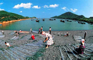 开渔节上食海鲜 “辟开呦千层浪,喊起号子出海来,嘿着么嘿呀……”一声声铿锵有力的号子惊醒我,小岛的开渔节开始了。第一次看到这么多渔船一起出海,至少几百艘渔船集中在渔港等待出发,高高竖起的桅杆一眼望不到边,很是壮观。 自然不能错过吃海鲜,种类很多。梭子蟹25元一只、濑尿虾15元一盘,还有鲳鱼、石斑鱼、花蛤……价钱要比青岛、大连都便宜。啥话不说,先来一瓶二锅头,再上两只梭子蟹,开吃。 初秋的朱家尖海鲜正肥,岛上渔民赶在开渔节撒下初秋的第一网,捕获的净是好东西。鱼蟹清蒸、蛤蜊蛏子爆炒,真是鲜得掉眉毛。 难忘口福品咸蟹 因为是开渔节,我在岛上吃到了“咸蟹”。这可是非常有口福的事,因为“咸蟹”只有在开渔节才吃的到。卖“咸蟹”的老妈妈说,“咸蟹”的 吃法最能分辨螃蟹的新鲜程度。以前,我吃过不少螃蟹,蟹肉丝缕分离,没有弹性,舌尖一沾到蟹黄,腥腥的,而刚腌的“咸蟹”,蟹肉雪白饱满、蟹黄亮红,撕一 口,有韧劲,鲜味盖过咸味,真是人间美味。 秋日海景连天叫不停 朱家尖一共有3片沙滩,决定租下一辆吉普车,前往“百步沙”沙滩,因为只有那里是免费的。车子驶过一座矮矮的山,兜兜转转之间,大片沙 滩就出现在山脚下,海水呈现着漂亮的蓝绿色。此时的太阳已经西斜,车子一个急转弯,那泛着金光的沙滩和大海,便豁然地出现在我的眼前。 我光着脚丫飞奔下去,沙滩干净细腻。 或许是初秋,沙滩上人并不多,绝对不存在“煮饺子”的尴尬。走在鹅卵石上,权当是免费足底按摩了。 旅游记事簿 1.开渔节在每年9月初。普陀山码头可以直接买票去朱家尖。码头到朱家尖镇出租车费25元,镇上的住宿一晚200元/间。 2.可带上烧烤原料,烧烤海鲜。 |