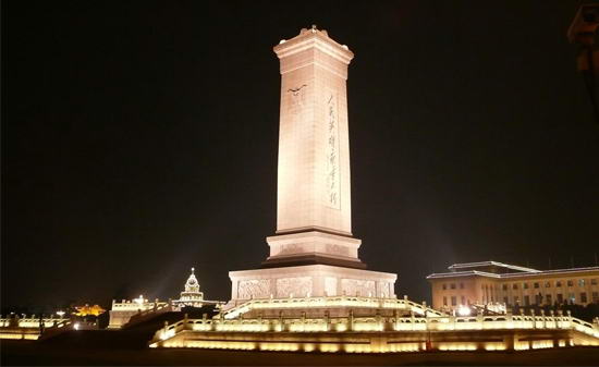 人民英雄纪念碑位于北京天安门广场中心。1949年9月30日,中国人民政治协商会议第一届全体会议决定,为了纪念在人民解放战争和人民革命中牺牲的人民英雄,在首都北京建立人民英雄纪念碑。当天下午6时,出席中国人民政治协商会议的全体代表,在天安门前广场上举行了建立纪念碑的奠基典礼。以毛主席为首的政协各单位首席代表一一执锨铲土,奠下纪念碑的基石。后经全国广泛讨论,确定碑型。到1952年,全国优秀的建筑师和专家们共设计了一百多种图案,经有关方面通过各种方式征求各界人民的意见,归纳、修正成最后的图样。 人民英雄纪念碑兴建委员会由北京市长彭真任主任委员,郑振铎、梁思成任副主任委员。委员会下设工程处,分设计、施工、采石、美术工作等7个组,进行工作。此外,专设一个委员会,在中国科学院现代史研究所所长范文澜领导下,研究浮雕画片所需的史料题材。纪念碑于1952年8月1日正式动工修建,1958年4月22日落成,同年5月1日隆重揭幕。