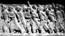 浮雕高2米,总长40.68米,共有约170个人物形象,概括而生动地表现出我国近百年来惊天动地的革命史实。上层小须弥座四周镌刻有以牡丹、荷花、菊花、垂幔等组成的八个花环。 两层须弥座承托着高大的碑身。碑身是一块长14.7米、宽2.9米、厚1米、重达60多吨的大石。碑身正面(北面)镌刻毛泽东题词“人民英雄永垂不朽”八个鎏金大字;背面是毛泽东起草、周恩来题写的碑文:“三年以来,在人民解放战争和人民革命中牺牲的人民英雄们永垂不朽!三十年以来,在人民解放战争和人民革命中牺牲的人民英雄们永垂不朽!由此上溯到一千八百四十年,从那时起,为了反对内外敌人,争取民族独立和人民自由幸福,在历次斗争中牺牲的人民英雄们永垂不朽!”碑身两侧装饰着用五星、松柏和旗帜组成的浮雕花环,象征人民英雄的伟大精神万古长存。整座纪念碑用17000多块花岗石和汉白玉砌成,肃穆庄严,雄伟壮观。 |