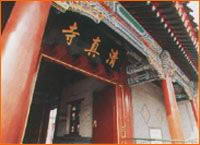 东四清真寺又称法明寺。在东城区东四南大街。 始建年代说法有二:一是始建于元至正六年(1356),传说宋元期间有筛海尊哇默定的第三子筛海撒那定在北京东城建立清真寺;二是建于明正统十二年(1447),由明代后军都督同知陈友捐资创建。 寺坐西朝东,有供礼拜的大殿、南北讲堂、水房、图书馆等,面积1万余平方米。大殿内金碧辉煌,雕梁画栋,三座拱门上刻库法体阿拉伯文《古兰经》经文,刻工精美。殿后的窑殿为穹窿顶结构。院内树木葱茏,宁静肃穆。寺内文物图书荟萃,有明成化二十二年(1486年)建宣礼楼(清光绪末年毁记)上的铜顶;万历七年(1579年)“清真法明百字圣号”碑,碑阳刻汉文,记叙穆罕默德事迹,碑阴为阿拉伯文,中间刻“理本无极”四字;还有各种版本的《古兰经》,其中一部元代手抄本,文字工整清秀,保存完好。现为伊斯兰教协会会址,也是穆斯林进行礼拜、聚礼和节日会礼的地方。 |