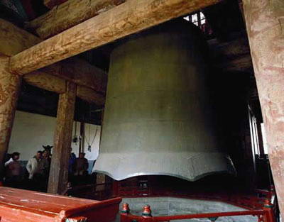大钟在寺的后院钟楼上。楼高16.7米,上圆下方,四面有窗,铜钟相传为明代永乐年间姚广孝所铸,是600年前的古物。钟高6.94米,最大直径为4米,深0.7米,总重量为46.5吨,被誉为“中国钟王”,钟声洪亮数里可闻,钟体内外铸有《华严经》全部80卷文字共23万之多,全用楷书书写,故又名“华严钟”。 现大钟寺内设中国古钟博物馆,馆内陈列古钟近百口,除永乐大钟外,其中还有最古老的原始社会末期的陶钟。在大钟寺内的几个大殿内布置有《大钟寺历史沿革陈列》、《中国古钟发展简史陈列》、《中国铸造工艺发展简史陈列》、《永乐大钟历史沿革陈列》和《永乐大钟佛经铭文陈列》,两侧开辟为“钟廊”,陈列历代古钟。 |