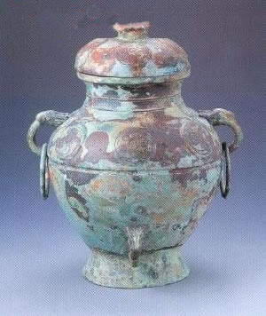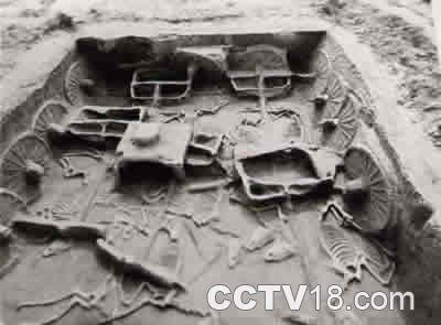 琉璃河西周燕国墓地,面积约5万平方米。至1983年底,已发掘了大、中、小型墓葬300余座,车马坑30余座。墓葬排列规模有序,均为长方形土坑竖穴单人葬,头向朝北,仰身直肢,有木质葬具,陪葬品多放在主人头前。小型墓一般长为2.5米,宽1米左右,木质葬具,随葬品为陶质明器,少数墓中也放有小件青铜器及玉、石等饰件。中型墓比小型墓规模稍大,一般长为3米以上,以棺椁为葬具,随葬品有青铜器、玉石器、漆木器和陶器等。大型墓葬不仅墓室较大,且多有墓道。墓道或设在墓室之南,或在墓室南北各有一条墓道。与其他商周墓葬不同,南侧墓道较宽,平面呈梯形,墓道底端距椁顶尚有一定距离,而不直通椁室。墓葬有早晚之分,该墓地从商末到西周早、中、晚期的墓葬均有发现。西周早期墓葬墓底设有腰坑,坑中埋狗,随葬陶器以鬲、簋、罐为组合。晚期墓葬随葬陶器则以鬲、罐为主。中型墓多有殉人,部分中型墓亦有车马陪葬。殉人一般1~2人,年龄多为青少年男女。或置于椁板顶部,或置于两侧二层台上,头向往往与墓主相反。大型墓和部分中型墓之车马陪葬坑,多在主墓以北,每坑埋葬车马数量多少与墓主社会地位有关,或2马1车,或4马1车。坑内车马或整车平放,或车轮、车箱拆开摆放。马匹则与车的摆放有关,整车平放者则多将殉马规整放在舆前车辕两侧浅槽中,马身上有成套马具。车辆拆开放置者则先将殉马摆放坑底,而后将车厢、辕、轴、衡等具压放马匹之上。出土车辆均为双轮、独辕、前衡后轴的木制车。车厢为平面长方形,四边有栏杆,后边留有缺口,以供上下。车辕、衡轴等处有青铜构件和饰物。车辐为18根或24根。有的车上备有伞盖,平面为圆形,直径1.3米,有26条伞骨,自顶部向四面作放射形排列。出土随葬品众多,不少青铜礼器形制巨大,有方鼎、圆鼎、簋、爵、甗、尊、卣、卤、觯、罍、盉等,以及玉器、石器、货贝、宝石等,不少青铜上铸有“匽侯”铭文。 |