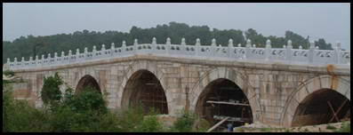 琉璃河石桥住于琉璃河街北侧,呈南北向,横跨大石河。全长165.5米,宽10.3米,高8米余。共11孔。中孔最大,拱券正中雕有精美兽头。桥体全部用巨大石块砌筑,桥上建有实心栏板和望柱,结构严谨,古朴大方。明永乐十六年(公元1418年)始建。嘉靖十八年(公元1539年)重修,嘉靖二十五年(公元1546年)完工。嘉靖四十年(公元1561年),又拨银8万两命尚书徐杲于桥两端向南北两方督修路堤,堤宽19.8米,高近4米,总长约2000米,堤面铺以巨型条石。1984年5月24日公布为北京市重点文物保护单位。 |