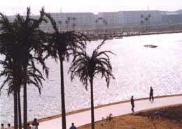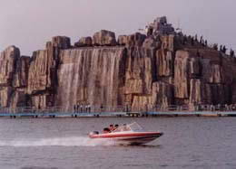 望海山、临潮湖位于大港区北环路北侧,总占地面积1000亩,湖面积700亩,湖中岛占地190亩。 山体面积126246平方米,高度50米,装饰有悬崖和瀑布,种植怪石5万多平方米,绿化面积12.6万平方米。湖上有两座跨湖大桥和一座观景曲桥。山顶和湖心有观景亭。此种在软基地上堆山工程尚属全国首例。