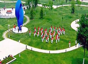 杨柳青广场设计精到,布局合理,功能完备,风格成熟,寓意深刻。它的建成极大带动了杨柳青镇的规划、布局和建设,使千年古镇面貌一新,焕发出勃勃生机。 广场总占地面积72000平方米,由主、副两部分组成。主广场的国旗、花坛叠水、雕塑喷泉构成广场“心脏”,欧式风格的疏林草地环抱东西形成“肺叶”,其间镶嵌着5个娱乐休闲园;副广场一组罗马柱廊为主体的建筑弧形排列,与主广场相互呼应,浑然一体。广场中心耸立的三座雕塑:蓝色的“发展无限”,黄色的“文明之光”、红色的“百福之门”,分别以先进生产力、先进文化、最广大人民的根本利益为寓意和象征,体现了古镇悠久的历史文化底蕴和人民群众对美好生活的强烈追求。 |
