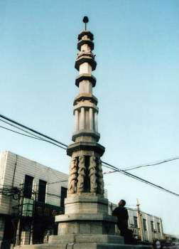 幢身由八面体石柱和宝盖构成,上、下6级。第一、二、五、六级雕佛像;第三级置光绪元年(1875)重刻康熙二十一年(1682)《重修石幢记》;第四级镌《佛顶尊胜陀罗尼经》文。各层宝盖,周匝雕 兽头和仿丝缕垂幔纹饰,最上一层雕瓦檐。幢顶置莲台、铸铁幡竿和如意 宝珠。整座石幢造型奇特,雕工精细。1966年曾被推倒,1988年葺补复原。 |