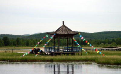 如果夜幕降临,天上一个北斗,水中一个七星,该是一种怎样的意境。为了保护湖的天然性,现在这里的湖面上架起了木制的浮桥,在浮桥上建起了木屋。