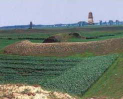 南城门外的大道两侧及其西面,有两组小型建筑群的基址,用石块垒砌房基,布局大致整齐,为守陵户居住区,面积大于城址。为全国重点文物保护单位。 |