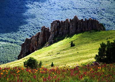阿斯哈图花岗岩石林形成原因 阿斯哈图花岗岩石林主要是在冰盖冰川的创蚀、掘蚀和冰川融化时流水的冲蚀作用下,由两组近于垂直的节理和一组近于水平的节理切割而成。在第四纪冰期的精雕细琢及岩浆活动、冰盖卸载、气候变迁、风蚀作用、人类活动等诸多因素的共同影响下,形成了今天我们所见到的阿斯哈图石林。 阿斯哈图花岗岩石林景区地处高山草甸草原与原始白桦林的交汇地带,这里植被茂盛,植物资源丰富,现有野生植物49科、185属、318种,因季节的不同而姿彩各异,魅力纷呈,可谓景因时移,景随时转。