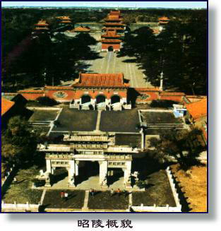 昭陵是全国重点文物保护单位。位于沈阳城北,通称“北陵”。是清太宗皇太极和孝庄文皇后博尔济吉特氏的陵墓。始建于清崇德八年(1643),顺治八年(1651)竣工。占地面积约450万平方米。