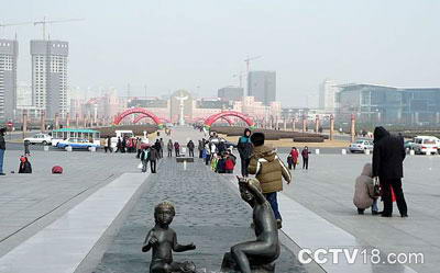 城雕《路》由两部分组成,一部分是足迹浮雕,一部分是弧形似翻开的一本书的台式广场,足迹浮雕上面的脚印是由1000个真人踩出的,每一双足迹有一个有名有姓的主人。这些脚印自北向南通向大海,是按着年龄排序的,排在第一行是1899年大连建市那年出生的,最后一行是1999年出生的。这1000双脚印表明了大连的百年历史是由勤劳奋进的大连人民创造的。 |
