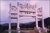 传说唐太宗李世民东征曾经路过此地,见海城地区是一望无际的大海,东征人马被海水挡住去路无法前进。李世民顺海边岛群策马扬鞭行至现三家堡境内,东征大帅薛仁贵搬起四块巨石落在一起形成龙椅,李世民下马座在石头上并设下香案,祈祷玉皇大帝收去海水现出陆地,并许诺三更借五更还。玉帝派杨二郎下界用宝鼎罩住海眼,于是海水渐渐退去。海水退去后,出现九座山脉呈一字批排列。这九座山脉便是龙王九子龙宫,九龙川之名因此而来。 |