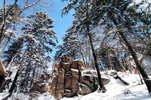老爷岭位于闾山西麓,坐落在义县东大榆树堡镇境内,是国家级自然保护区。老爷岭建有上下两院,上院有出巡殿、武圣殿、三清殿,建在义县与北宁“山界”处因寺庙内塑关公像,故称老爷庙,山便因庙而得名。 附近山势险要,林木葱荫,站在上院远眺,山峰起伏,清新悦目。下院圣清宫殿庄严肃穆,殿内彩塑药王、财神、观音等佛像37尊。寺庙旁有一对鸳鸯井四季不竭,山顶点将台,鹰嘴峰令人望而怯步。景区内山雄石险,风光秀丽,森林茂密,花木奇秀,令人心旷神怡。 |