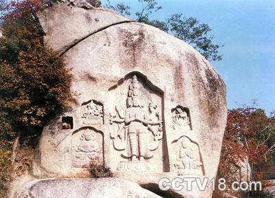 道光八年(1828年),来自西藏普安寺四世活佛丹毕道尔吉,利用海棠山的天然岩石崖壁主持镌刻摩崖造像,其文字有蒙、藏、满、汉四种,50余处,在国内罕见。内容为咒文、真言、赞语、镌刻时间、记事、施主和雕刻工匠姓氏。佛教人物造像有:阿底峡、宗喀巴、贾曹杰、克珠杰、米拉日巴、关圣大帝,普安寺位显、德高、权重的活佛和经师。神佛造像主要有:释迦牟尼、阿弥陀佛、无量寿佛、药师佛、观音、文殊、度母等佛母和金刚、护法神造像,共46种190尊。在雕刻方法上吸取了中国古代及国外雕刻艺术风格,造像雕刻得细纤精巧,惟妙惟肖,从形式上看生动活泼,神形兼备,富有美感,形成了海棠山独特的具有蒙、藏、汉族兼备的高、中低浮雕艺术特色。至今有些造像的彩绘仍很鲜艳,令人叫绝。目前,在我国发现如此规模的摩崖造像还尚属首次,海棠山摩崖造像堪称中国一绝。 |
