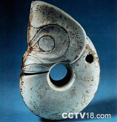 这些积石冢位于山冈之巅又层层迭起,具有后世帝王山陵的景观。充分显示出中心大墓主人“一人独尊”的身份地位。他们是宗教主,也是“王者”身份。坐落在主梁顶上的女神庙供奉着围绕主神的女神群像。一般为真人原大,位于主室中心的大鼻大耳竟为真人的三倍。神像又是以真人为依据而塑成的,比例适中又极富表情,权威人士认为“她是红山人的女祖,也就是中华民族的共祖”。显然,这样一处规模,组合超群的祭祖圣地,不会是一个民族或部落所能拥有,而只能是为整个文化共同体所共有,牛河梁又正处于红山文化分布区四通八达的中心地带,它就是该文化高层次的一个起聚落中心。把它作为中华五千年文明的一个象征是当之无愧的。 |
