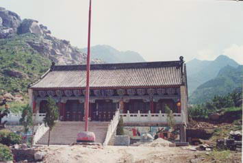 从北坡登山,灵隐寺在山根。旗杆、狮子、牌楼、佛殿全是石雕砌筑。古代石匠以简陋工具,创造了如此高超艺术品,令人叹服。四柱三间抱鼓牌楼,枋木构造气宇轩昂。上面雕刻有八仙、三阳开泰、牡丹、葡萄等图案,生动逼真。雕刻的楹联,书法飘逸有力,堪称上品。内容有:“座分五行山分八卦,虹飞百尺螺绕千重”。五间大雄宝殿建在高台上,石雕立柱盘绕巨龙,柱上刻的楹联体现了该寺的宗旨:“弘扬佛法贯春秋雷音醒世界,慧日高升登莲台慈雨润众生”。殿里7尊檀香木雕刻的佛像外贴金箔,危坐莲台金光闪烁。两侧分列十八罗汉,气氛肃穆庄严。从灵隐寺出发向顶峰前进,一小时后到水井旁。上边有九十九道石阶,进角门就是“玉皇顶”。居中的石庙里供奉玉皇大帝。游人都把登上玉皇顶作为高尚的文化活动,很早以前就有民歌描述观景的体会:“东看锦郡玲珑塔、西视长城山海关,南望宁远一片海,北揽朝阳万里烟。偶而闲游真可慕,八面威风不虚传。” |