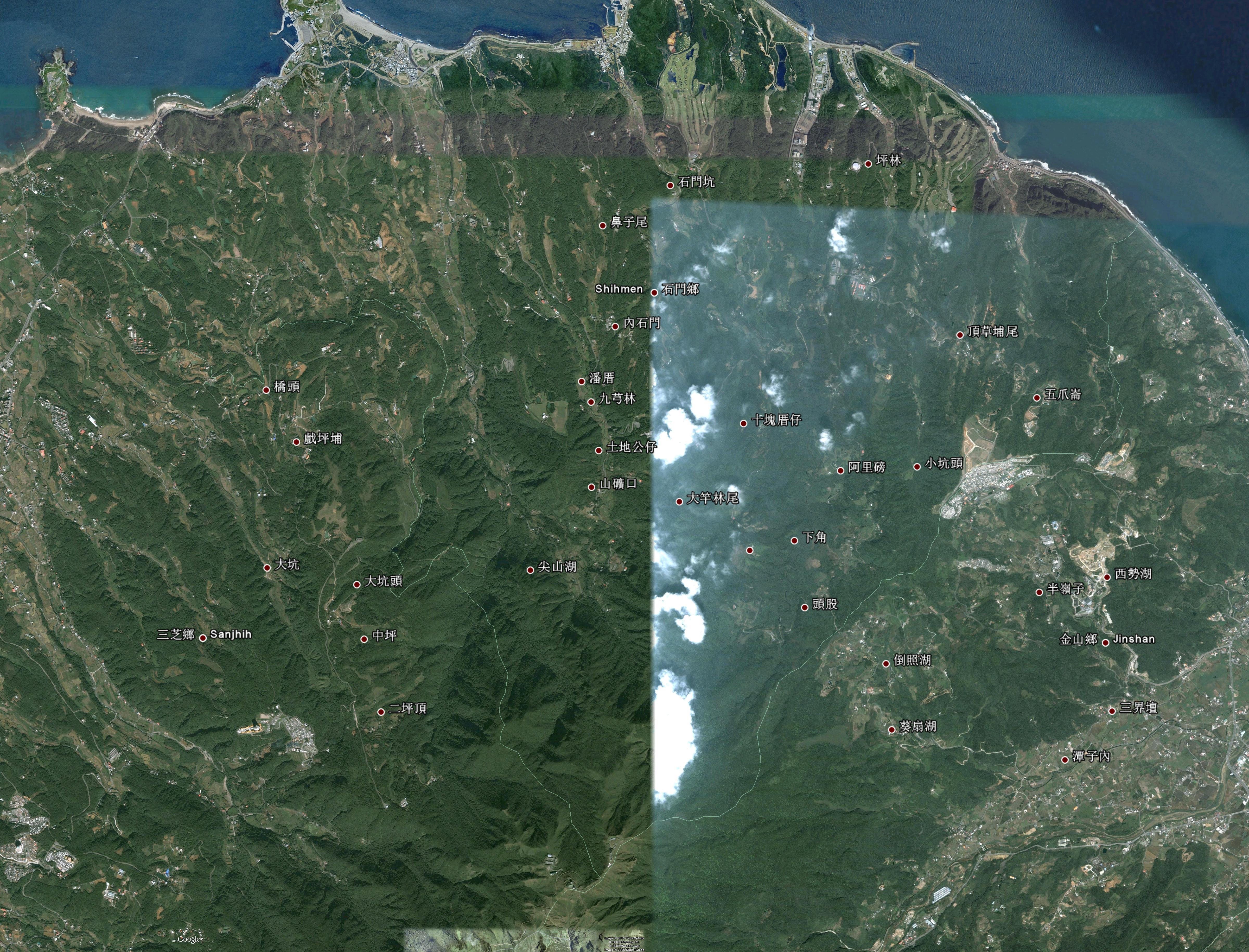 台湾全岛    台北市   淡水镇    淡水   三芝乡    石门乡   金山乡   万里乡   野柳   八里乡     林口乡     三重市     芦洲     板桥市     基隆港     桃园市     中壢市     新竹     苗粟市     台中     彰化市     日月潭     彭湖群岛