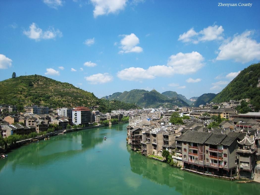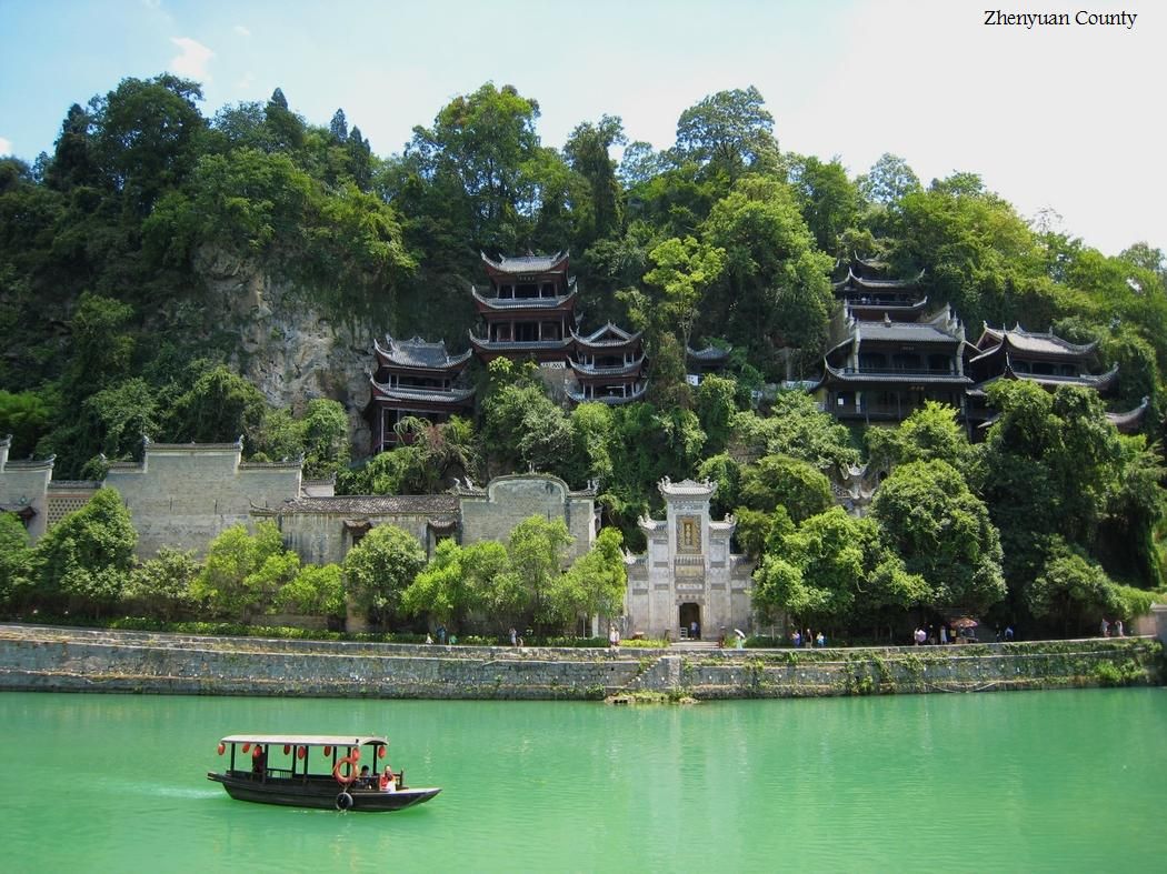 镇远隶属贵州省黔东南苗族侗族自治州,位于舞阳河畔,四周皆山。河水蜿蜒,以“S”形穿城而过,北岸为旧府城,南岸为旧卫城,远观颇似太极图。两城池皆为明代所建,现尚存部分城墙和城门。城内外古建筑、传统民居、历史码头数量颇多。城东的青龙洞,是一组规模极其宏大的明清宗教建筑群,其间既有佛教寺庙,又有道教宫观和儒家祠庙,三教合一,蔚为壮观.