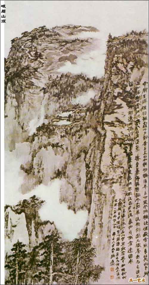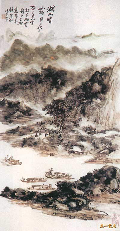 江山如此多娇,此画是1959年傅抱石和关山月先生合作为建国十周年所绘制的(悬挂在新建的北京人民大会堂内)。这样巨大幅面的山水画,在我国历史上是罕见的;在一幅画面上表现出我国幅员辽阔、气势雄伟的壮丽山河,也是前人从未尝试过的。这是建国以来,唯一由毛泽东主席亲笔题字的中国画。《江山如此多娇》,气魄之大,意境之新,布局之美,令人称绝。他把伟大祖国的壮丽河山荟集画面:一轮红日从东方升起,普照着大地;山峦起伏,连绵不绝,浩浩瀚瀚,郁郁苍苍。其下飘然的烟云,回绕着整个大地。古老的长城,奔腾的黄河,婉蜒的长江,世界屋脊的珠穆朗玛峰,都形象地跃然于画上。近景是一片青绿的丛山,其间点画了华茂的树木。在画中似乎描绘了泰山、衡山、华山、恒山、嵩山,但仔细看,又不完全象五岳,这是作者巧妙的立意,请读者自己去想象和回味吧:总之,这幅画充分展现了祖国江山的雄壮、辽阔,富有时代新意,观之令人心旷神怡。傅抱石(公元1904一1965年),现代杰出的中国画家、美术教育家。原名瑞磷,后更名抱石,江西新余人。早年就酷爱绘画、书法、篆刻。解放后,历任江苏国画院院长、江苏美术家协会主席、中国美术家协会副主席等职