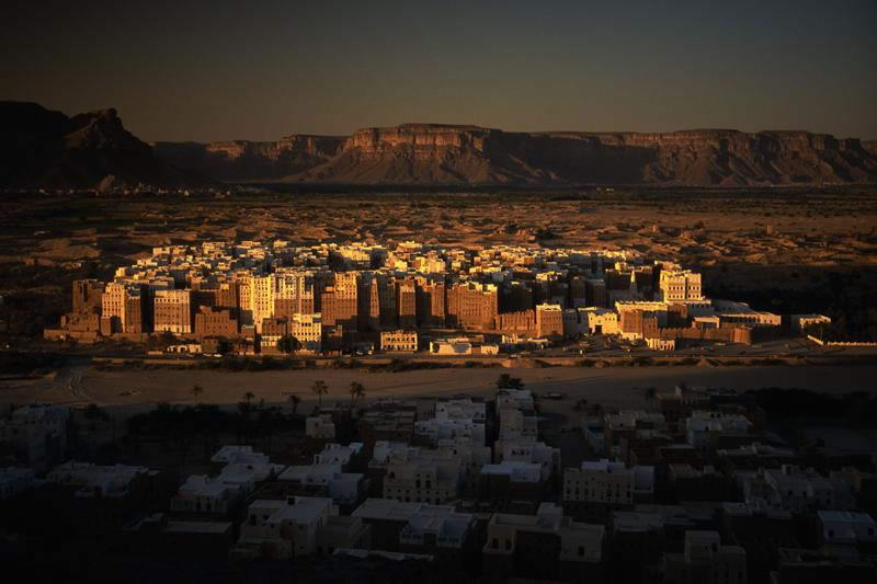 在阿拉伯半岛的沙漠中央拔地而起的一片高层建筑群给人一种海市蜃楼般不可思议的感觉。那简练的外观,雷同的造型不由让人联想到纽约的摩天大楼。这些用土坯为建材的建筑群高达30米,在中世纪来说的确堪称高层建筑。具考证这种高层建筑的由来是传统家族制度的产物。当时家族分家后一般不在外面新盖房屋另起炉灶,而是在原来的房屋顶上加层扩建,从而逐渐形成了这种高层建筑。每栋建筑为5层或8层结构,总共有500多座,居住有7000入左右。高楼的1、2层房间大多没有窗户(1层养家畜,2层作仓库),3层以上供人居住。屋顶和顶楼都涂有雪花石膏。这种涂白实际上对建筑物起到了保全作用。设想如果没有每年一度的涂白,300年前建造的房屋可能早已被侵蚀掉了。现存的建筑多为100年前或300年前建造的,最古老的还可追溯到10世纪。