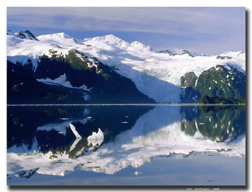 站在湖边,迎着清凉的海风,放眼望去,蓝色——既是天空的颜色,又是湖水的颜色,天空包容着湖水,湖水连接了天空,让你分不清哪里是湖哪里是天。但是此蓝色又不同于彼蓝色,天空是蔚蓝的,是都市中早已消失的蓝色,湖水是湛蓝的,没有一丝波纹,悠悠的白云和晶莹的雪峰倒映在湖面,蓝色的世界里便又多了几分纯净。面对如玻璃般明净的湖水,你的心灵会感受到纤尘不染的宁静与单纯。
