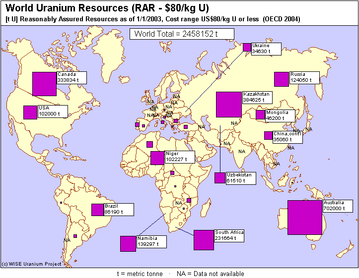 世界上放射性元素铀的分布