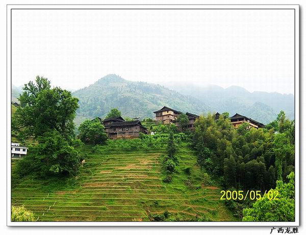 5.2 晚19.45抵达桂林北站(晚点),桂林北站偏僻,打的到市区汽车站,最晚班去龙胜县城的车已开走19.00,阳朔方向有加班车,最晚22.00左右,而次日早班车发车时间在7点左右,去龙胜如慢车时间难以确定,在路口下车还要转车进去;而直达快车则只停龙胜县城,也要再从县城搭车到大寨或平安。这两种方案节约但耗时都不少,况且桂林市区已难找住宿,听说招待所也要二、三百,而阳朔住宿更紧张,于是决定连夜打车去龙胜大寨住,和司机谈价300(平时200差不多),由司机联系大寨那边的住宿,匆忙在车站边吃了米粉(好难吃)就上路了(21.00左右),到大寨那边已经要22.40左右,哇塞,这么晚都有值班的,买了门票(50/张,2天有效,包括大寨和平安村等几个点),在司机联系好的店家小妹妹带领下,走路进了田头寨,寨里的木屋全开作旅店,30元/人,卫生是公用的,每层都有,还算干净,洗澡则要去底楼了。