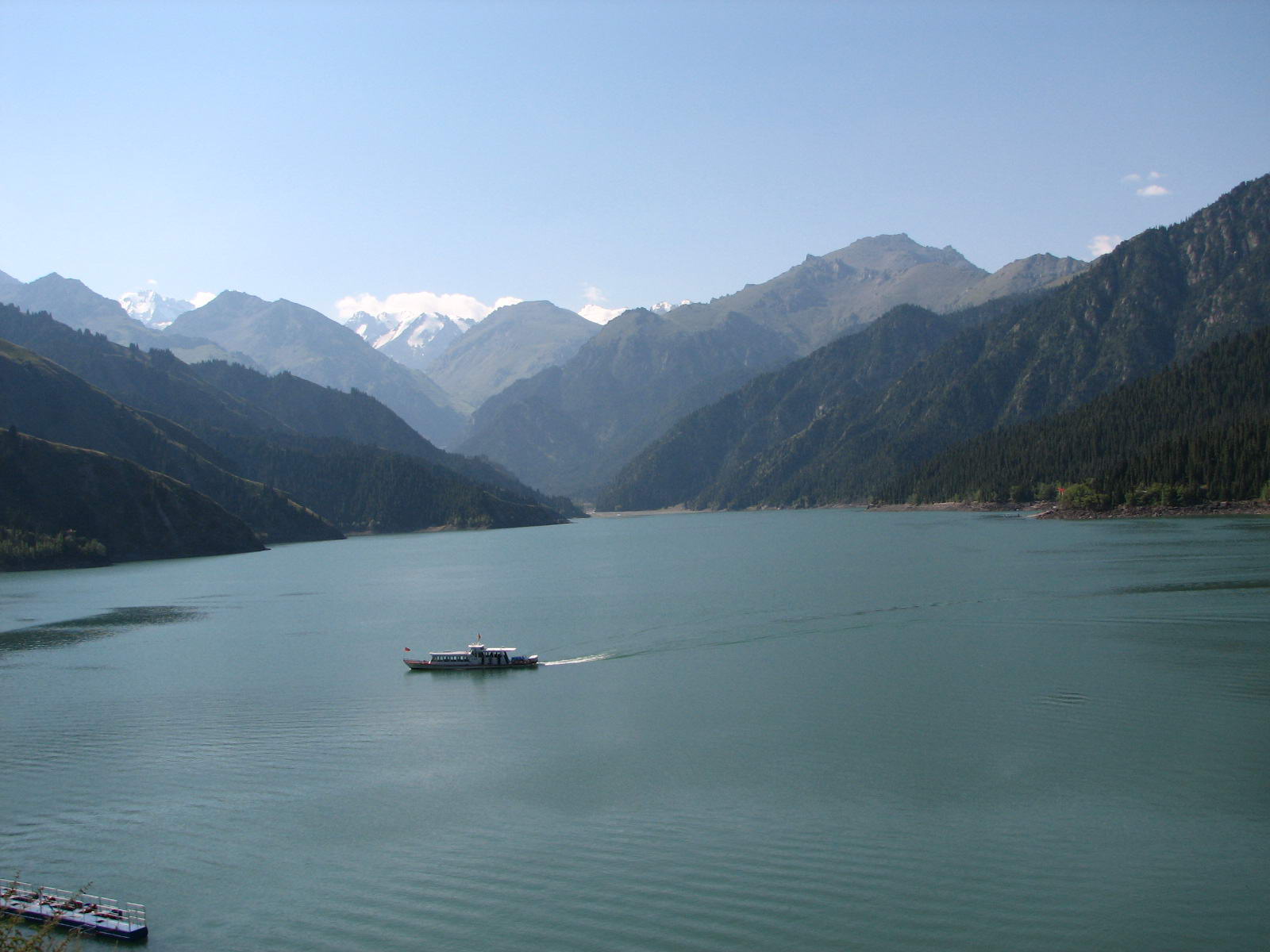 在天池,我们席地而坐,歌舞中吃完我们的午餐。
