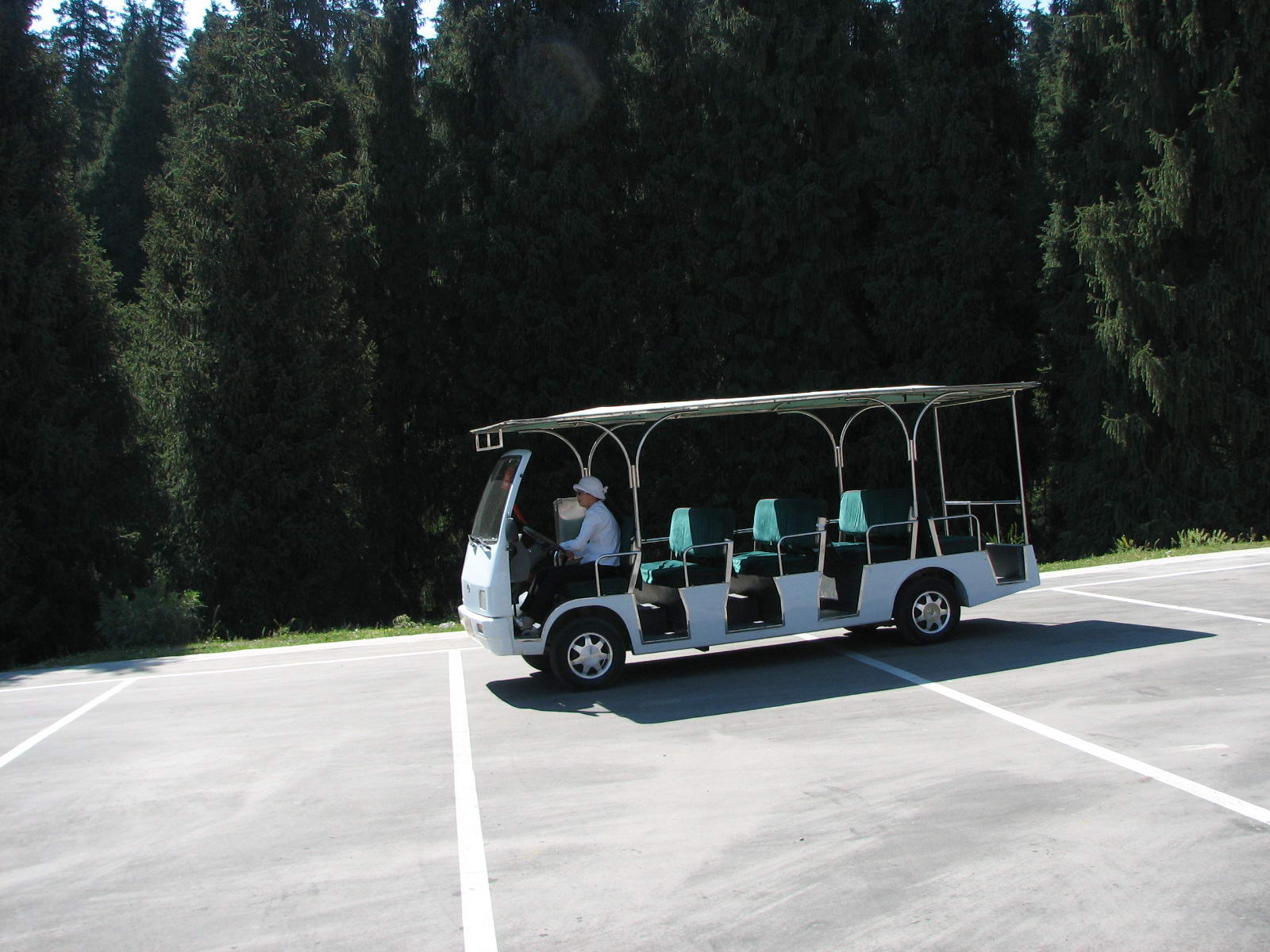 下了索道,我们乘坐这样的电瓶车到达天池岸边。